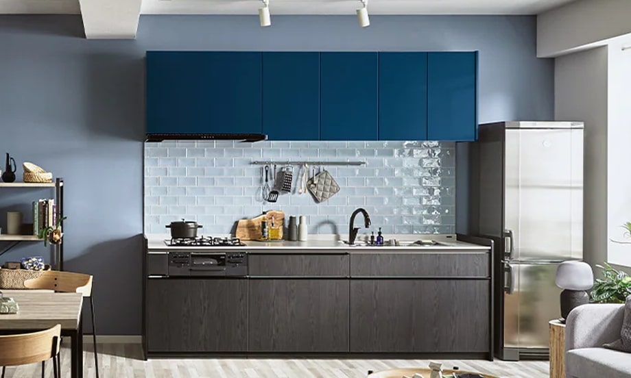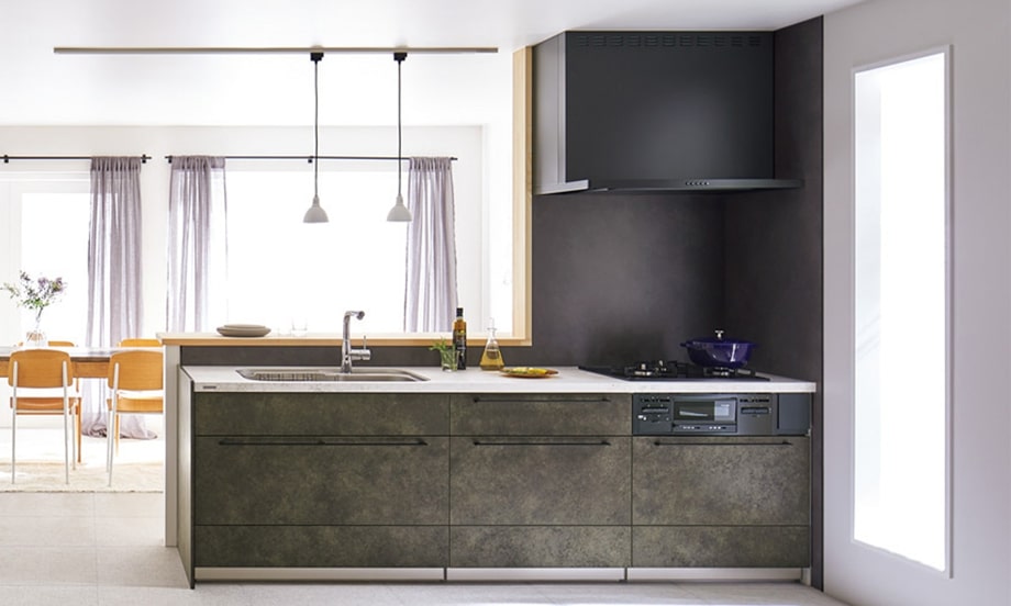シンク・コンロ・調理スペースが 横⼀列に並んでいるタイプ。 壁付けに設置され、 スペースを広く取れる集合住宅 などで多く採⽤されている。 |